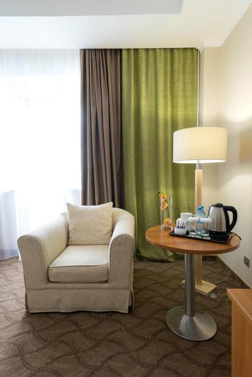 Ежедневно подают завтрак "шведский стол". В традиционном ресторане подают широкий выбор блюд европейской кухни. Гости могут насладиться освежающими напитками в лобби-баре.Рядом находится ж/д станция "Вокзал Астана".В отеле гостей ожидают косметические процедуры, турецкая баня и массаж, чтобы насладиться отдыхом. На территории отеля можно заняться различными видами спорта, такими как боулинг и настольный теннис.