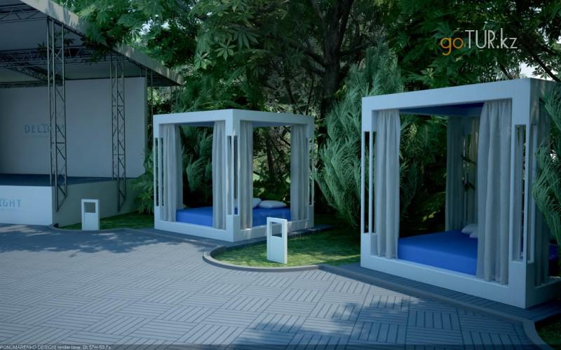 Cabana - десять отдельных площадок. Есть возможность изолироваться, задернув легкий балдахин;