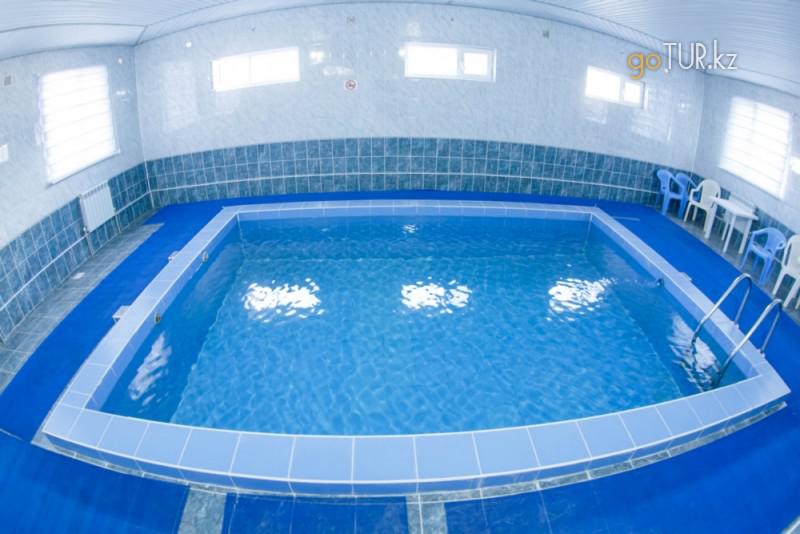 Территория небольшая, ухоженная. На территории есть магазин, столовая, детская площадка. Так же есть два бассейна крытый и открытый. Температура воды 42 градуса.
