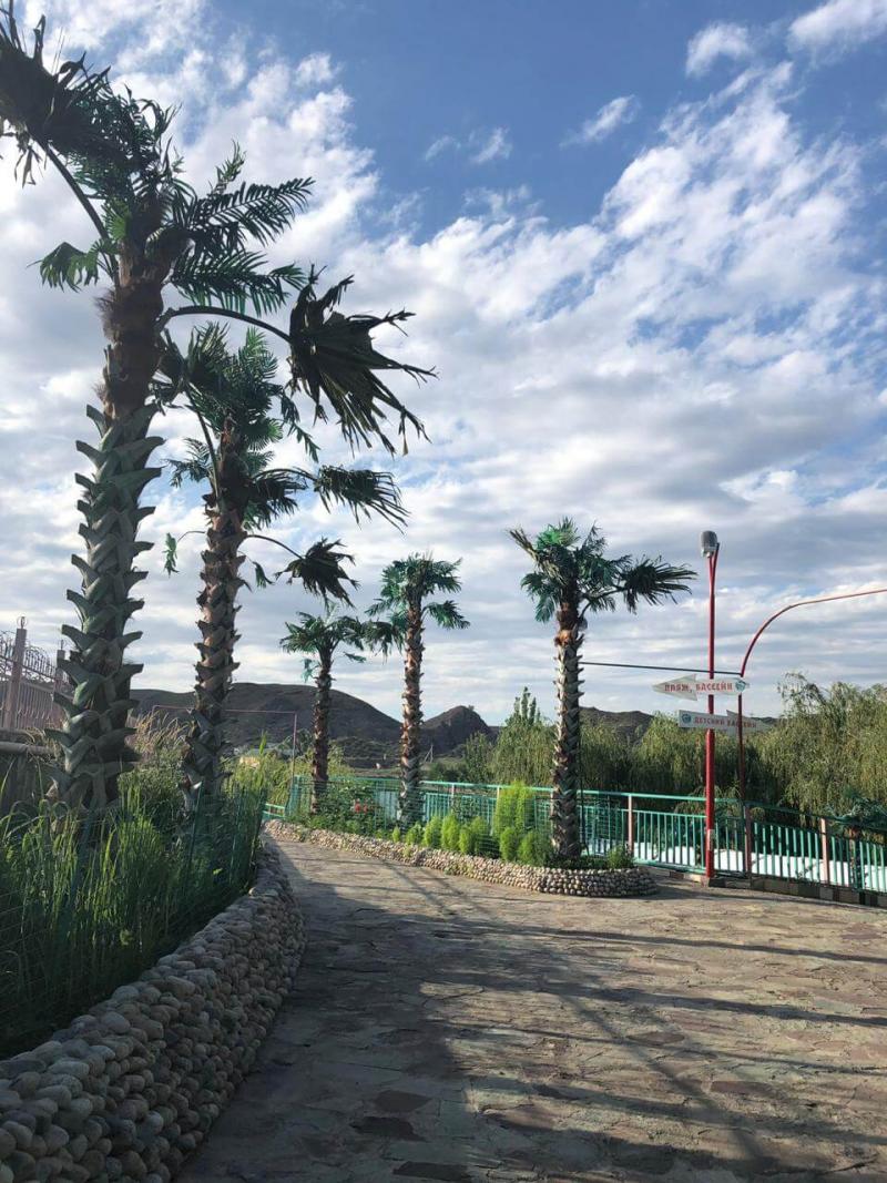 База отдыха «Капуста» это качающиеся на ветру пальмы, цветы, деревья, фонтаны, разнообразные рельефы и прогулочные дорожки. Целое множество тропинок на огромной территории, где вы можете спокойно уединится, или взять в прогулку приятного собеседника. А кому не терпится скорее на пирс, к морю, тот легко побежит по убегающей вниз лестнице и может прямо с разбегу окунутся в прохладные волны