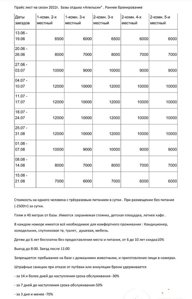 Дом отдыха "Апельсин" хорош для отдыхающих тем, что он стоит на самом побережье озера "Алаколь", до песчаного пляжа несколько десятков метров. Это большое преимущество перед другими домами отдыха. В новых коттеджах комнаты свежи, оснащены телевизорами, холодильниками, кондиционерами, спальными комплектами. Музыка не гремит всё время. У нас обычно тишина, которая и привлекает отдыхающих. Желающие потанцевать, послушать музыку могут это сделать в соседних домах отдыха. При "Апельсине" есть столовая, в которой организовано трёхразовое питание. Здесь имеются и комплексные обеды, и обеды по заказу из предложенных на выбор.