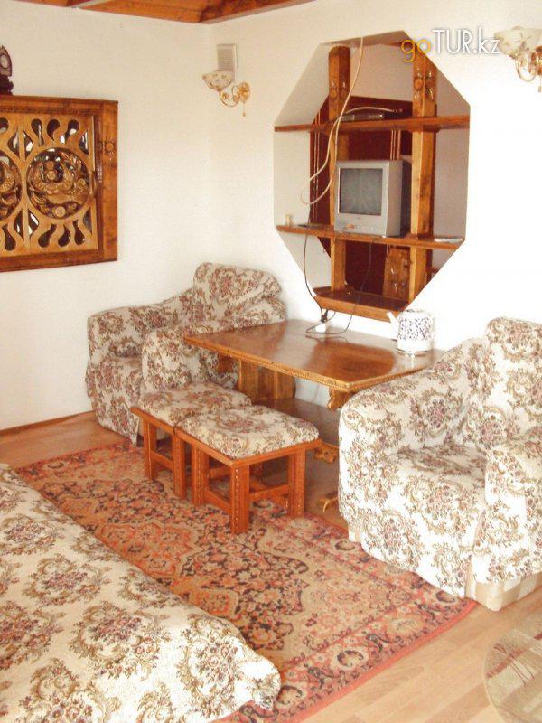 Пансионат рассчитан на 30 человек. Все номера, кафе-бар, беседки находятся практически на песчаном пляже, принадлежащем пансионату. Гостей расселяем в сказочных номерах Люкс 2-х и 4-х местных (с дополнительными местами) со всеми удобствами: чистая удобная постель, полотенца, холодильник, спутниковое TV, санузел с душевой кабинкой и туалетом, эл. чайник, столовые приборы, фен, утюг. Также, размещаем в 4-хкомнатном коттедже со стандартными 4-х и 5-ти местными номерами. Здесь имеется общая гостиная с телевизором и холодильником, душ с горячей водой, туалет. Рядом, в 10 метрах, дополнительный санузел с солнечными батареями: 2 душа и 2 туалета. На территории есть два 2-х местных бунгало для любителей экзотики.